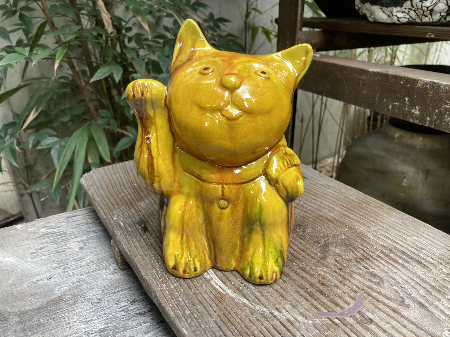 愛らしいポーズで金運と幸せを呼び込む縁起物です。三彩ほか全5色あり。